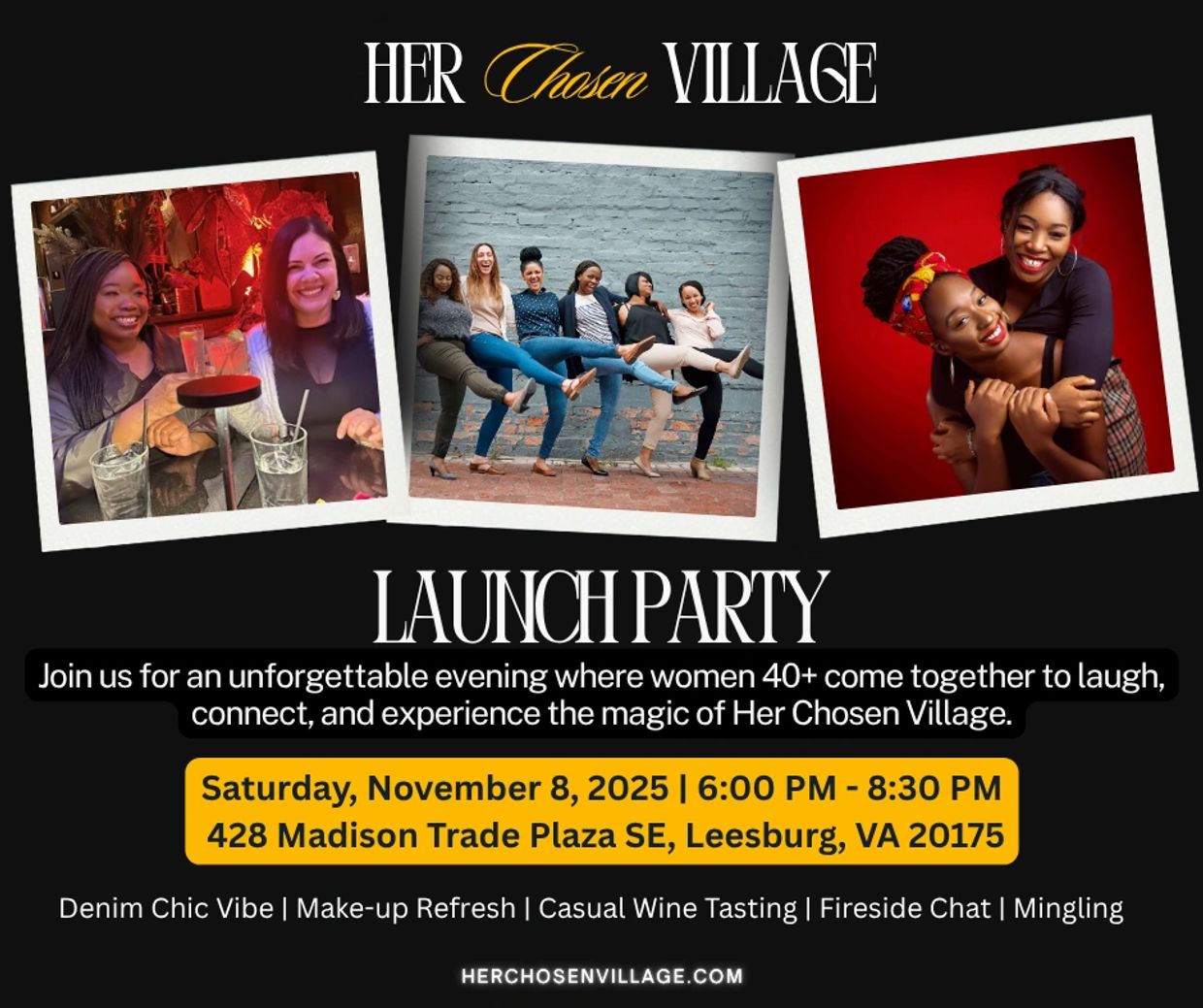 Ladies, it’s finally happening! 💛 Her Chosen Village is here, and we’re kicking it off with a night that’s all about US—women 40+ who are ready to laugh, connect, and celebrate!